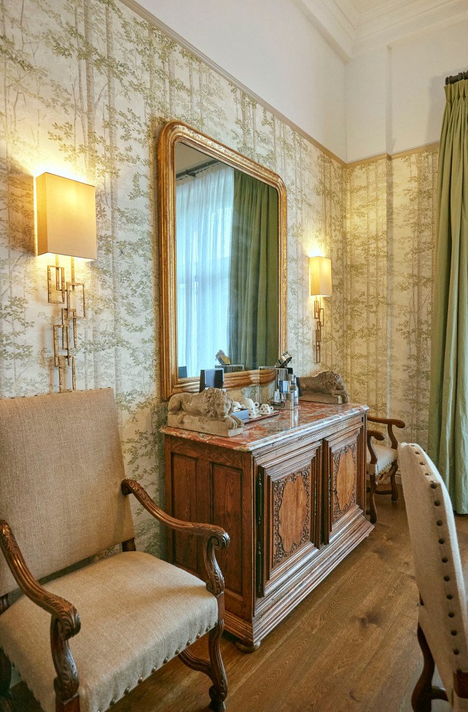 But, that’s what is really lovely about all the rooms at The Balmoral. The designer Olga Polizzi, Director of Building & Design at Rocco Forte Hotels, didn’t want to fall into the usual cliches of Scottish decor. She’s designed the rooms in earthy color palettes inspired by the heather, moss, and misty landscapes of Scotland. She’s paired antique furniture with contemporary art, and vice versa. She uses natural fabrics: linens, silks, leather, and wool.