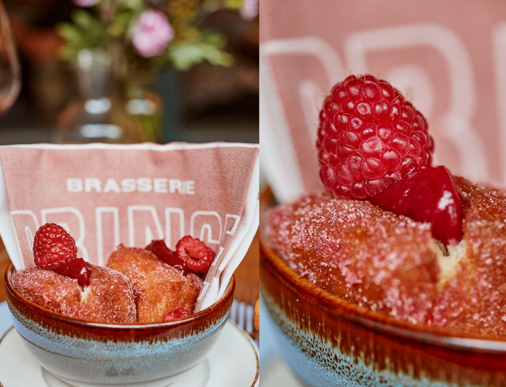 The dessert: divine. We have Crème Brûlée (it really does have a satisfying crack as advertised) and Raspberry Beignets (“not to be shared” they say, and they would be correct). Paired with lattes.