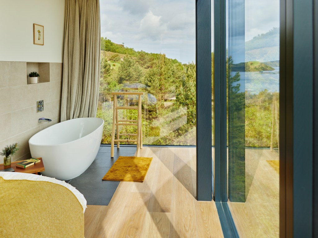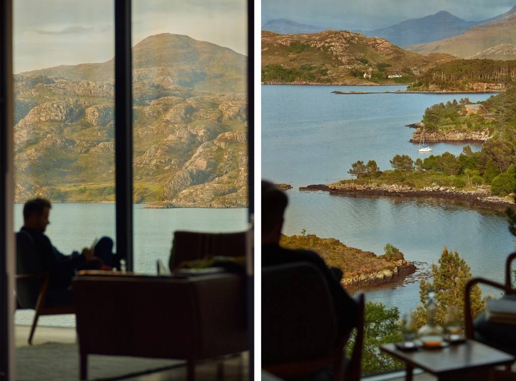 No matter the Scottish weather, there’s a bounty of cinema in watching the ever-changing light and wildlife. It’s viewable from nearly every room in the house. Whether you’re cooking, showering, soaking in the tub, sipping a dram near the fire, or just waking up, you’re greeted by the natural world around you.