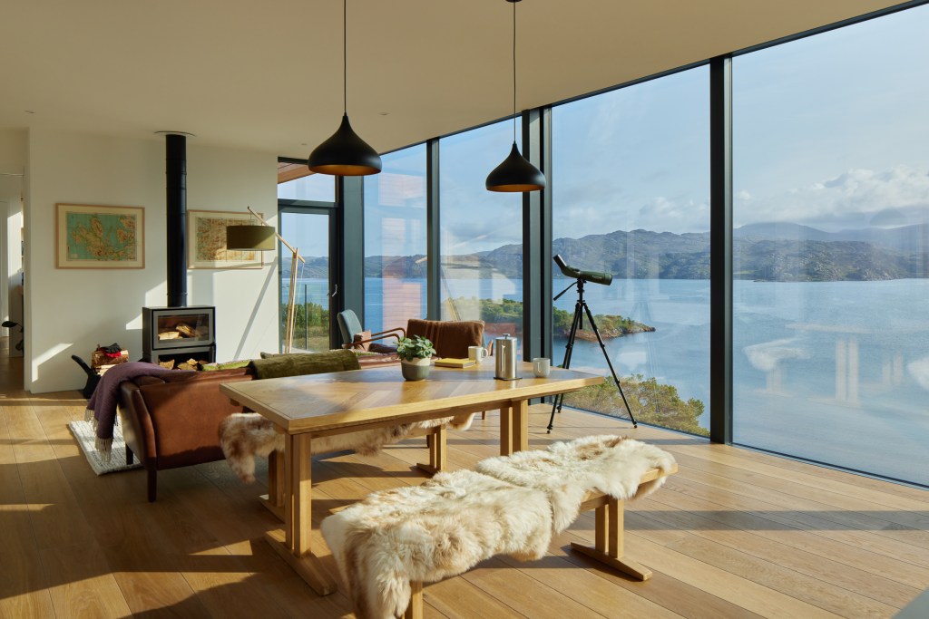 Perched overlooking dramatic views of Loch Shieldaig, Torridon, and Diabaig hills, Creag na h’iolaire (‘rock of the eagle,’ Scot’s Gaelic) appears as more secret James Bond lair than typical Scottish cottage.
