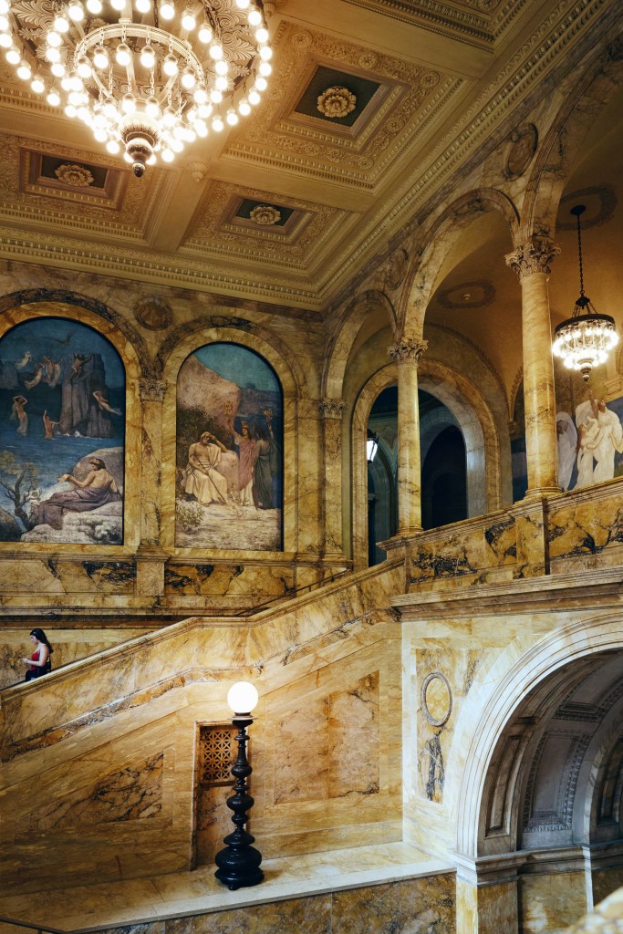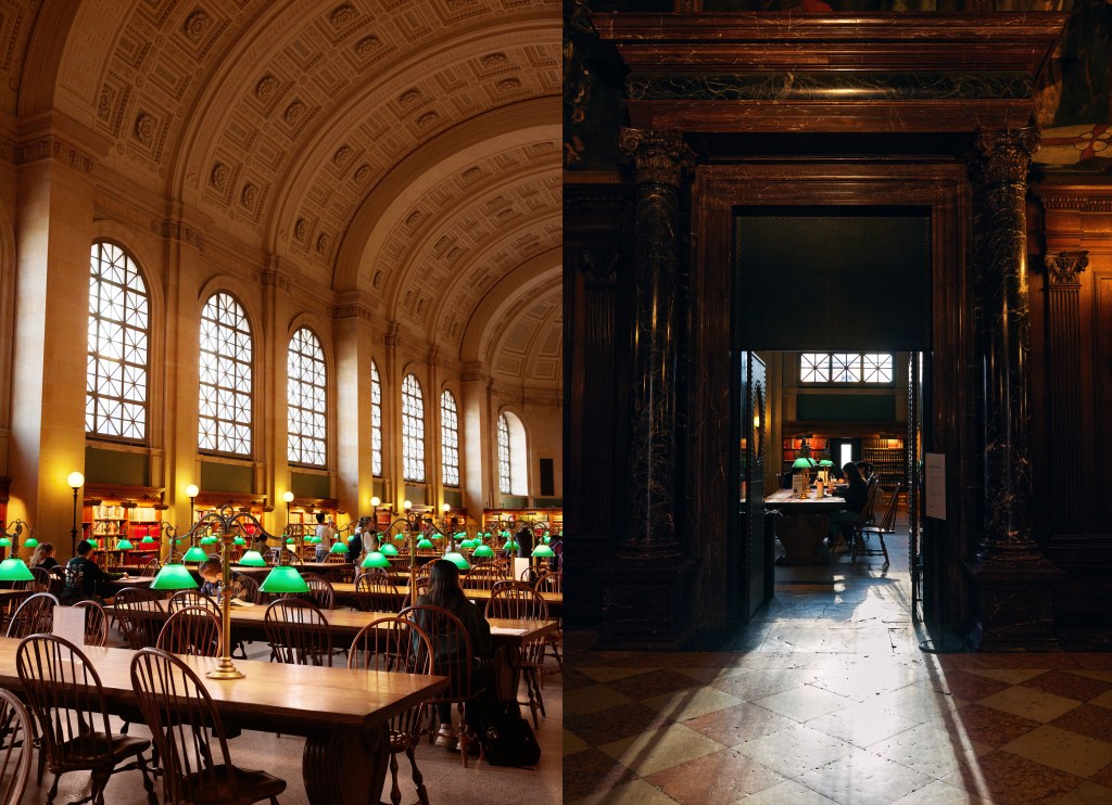 Next up, we drive to the Back Bay neighborhood to see the Boston Public Library. From BPL’s website, “Established in 1848, the Boston Public Library is a pioneer of public library service in America. It was the first large free municipal library in the United States, the first public library to lend books, the first to have a branch library, and the first to have a children’s room.”